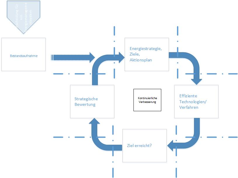 - Den signifikanten Vorteilen, die mit der Einführung eines Energiemanagement einhergehen, stehen aber auch interne Ressourcen gegenüber. Zeit und Geld für die Bereitstellung des Energiemanagementbeauftragten, die Umsetzung geeigneter Maßnahmen oder die Umstrukturierung betriebsinterner Abläufe. Das bedeutet, dass eine Entscheidung, ob ein Energiemanagementsystem eingeführt wird, immer strategische Aufgabe des Topmanagements sein muss, damit entsprechende interne Ressourcen in adäquater Zeit auch mit Rückhalt des Topmanagements in Anspruch genommen werden können.
